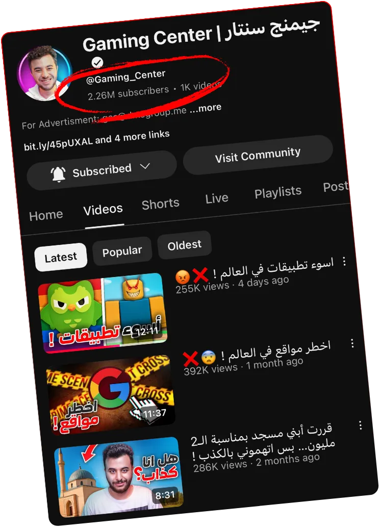 فرصتك الذهبية إن عبدالله بنفسه يحلل قناتك على يوتيوب لايف معاك من أول العناوين، للصورة المصغرة، للنيتش، للفيديوهات نفسها، ويكشف لك نقاط القوة والضعف بالظبط، البونص ده لوحده ممكن يختصر عليك شهور كاملة من المحاولة والخطأ